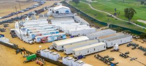 Off of the course, the production and operations team will be on hand in the television compound. A large fleet of NEP mobile production units will house the team, including ND7 (A, B, C, and D units), ND1 (A,B,C, and D units) Supershooter 32, ST32, Super B, and ESU. Other trucks that will occupy this space are XL 1, Fiber 1, and Fiber 2. Along with the large number of cameras, these trucks will control other pieces of equipment, including 142 channels of EVS replay and nine graphics machines (six provided by Chyron). In terms of fiber, a total of 64 miles was used for the four-day event.