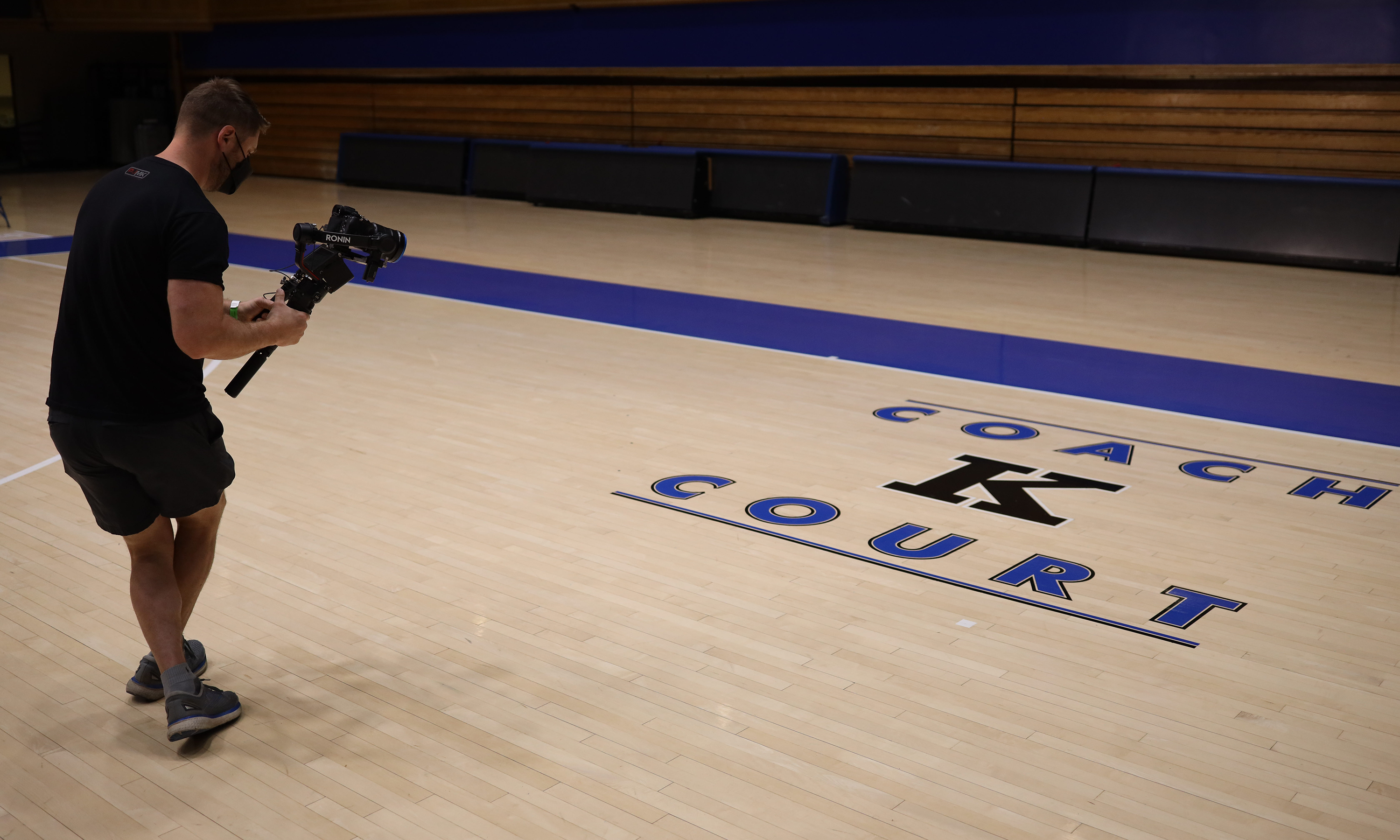 ESPN is preparing a fully-native 4K show that includes a whopping 33 game cameras. The arsenal features a two-point cabled aerial camera system (SupraCam) that’s rigged to fly above the “Cameron Crazies,” nine Fletcher robotic cameras, a shallow-depth-of-field handheld rig (the operator will use a Sony A1 camera with a 50mm prime lens on a DJI OSMO gimbal), a full-sensor Sony HDC-4800 camera at a slash position with a FUJINON SK 20×35 full-sensor Cinema Box lens shooting primarily shallow depth-of-field shots of Coach K on the sidelines (the same setup used last season on Monday Night Football), a live drone flying outside the building, and much more.