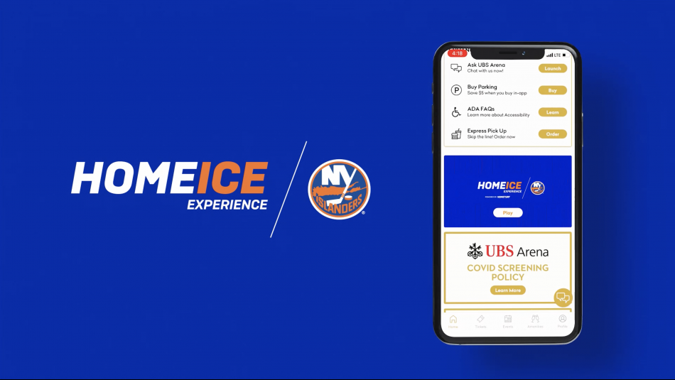 Needing a way to entertain fans after the National Hockey League returned from the COVID-19 pandemic in 2020, clubs resorted to virtual applications developed to keep friends and families in touch while in isolation. HomeTurf, a second-screen platform that replicates the in-venue show and is deployed by many professional teams, was rebranded as HomeIce by the Islanders. Introduced during the 2020-21 NHL regular season within the New York Islanders app, the digital environment features such elements as videoboard prompts, fan trivia, poll questions, chances to win prizes, hype videos, and other forms of content, live statistics, and analytics.