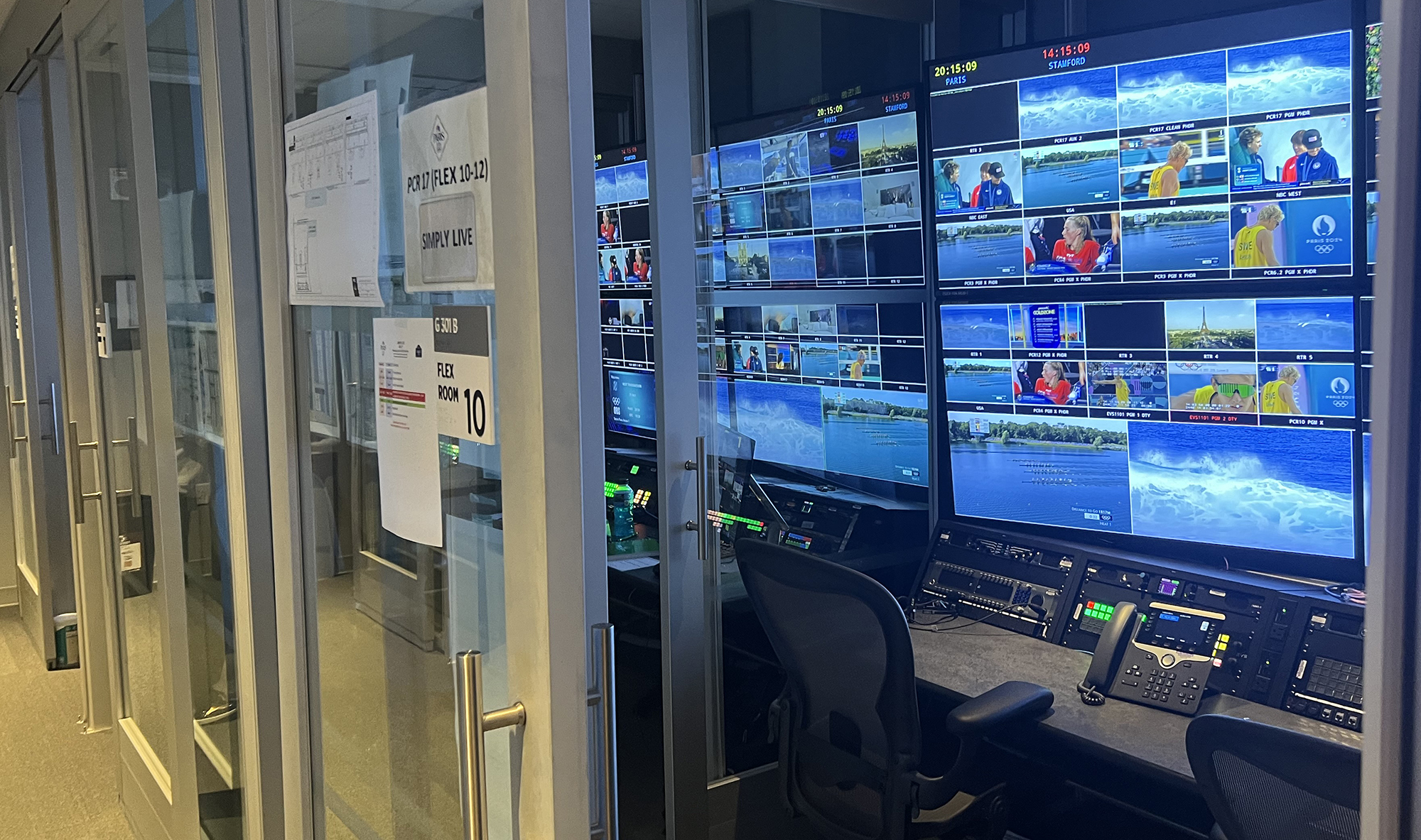 During the 19 days of Paris 2024 coverage, Stamford is housing 17 production-control rooms, the lion’s share of NBC’s live studio productions, 28 off-tube announce booths, a dozen “flex rooms” that can serve a variety of needs, 24/7 live ingest and editing, the massive Highlights Factory operation, the broadcast-operations center, and more.