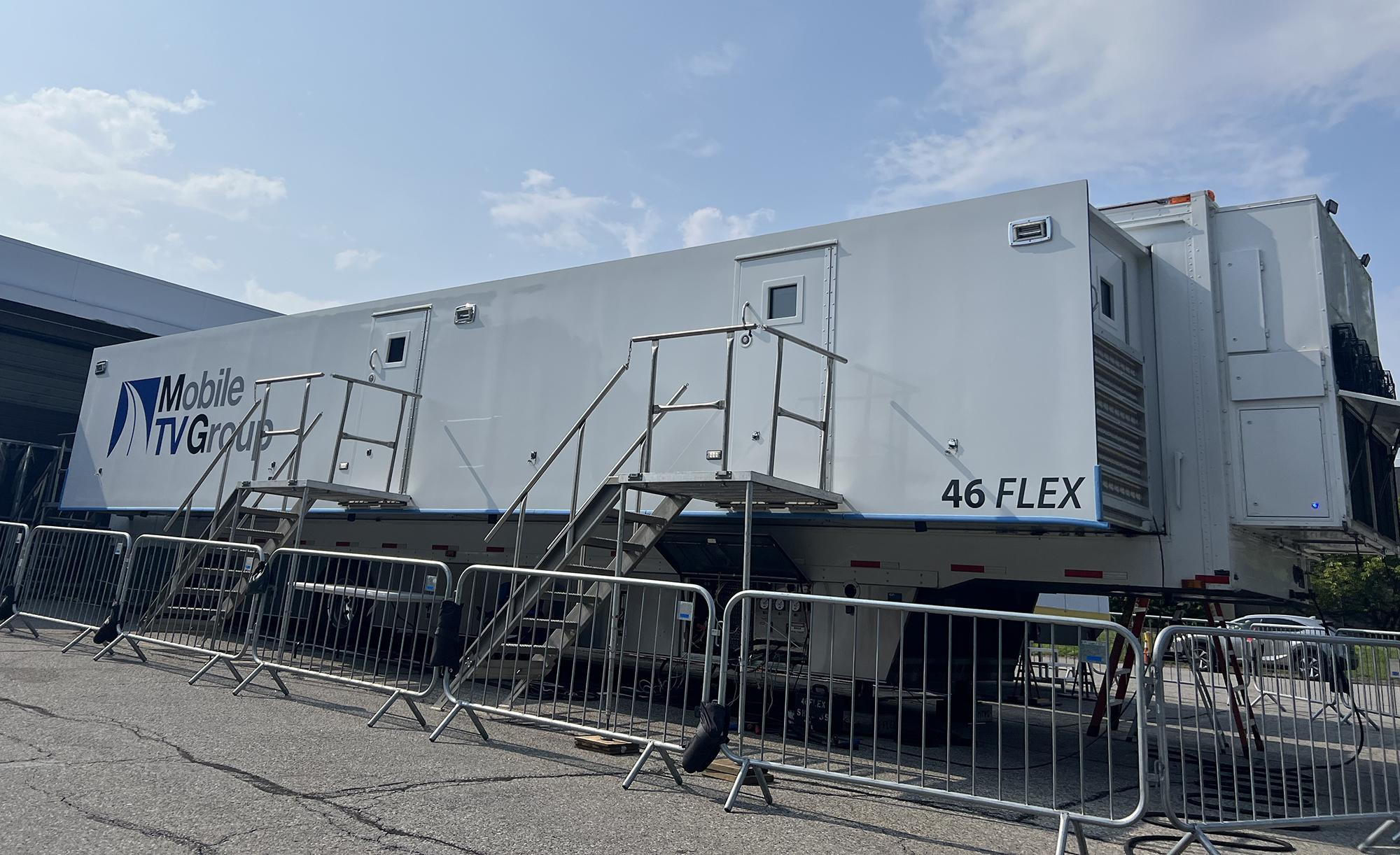 And PCR17 — actually, Mobile TV Group’s 46 Flex mobile unit parked at the loading dock — is the home of daytime gymnastics and will shift to basketball finals late next week.