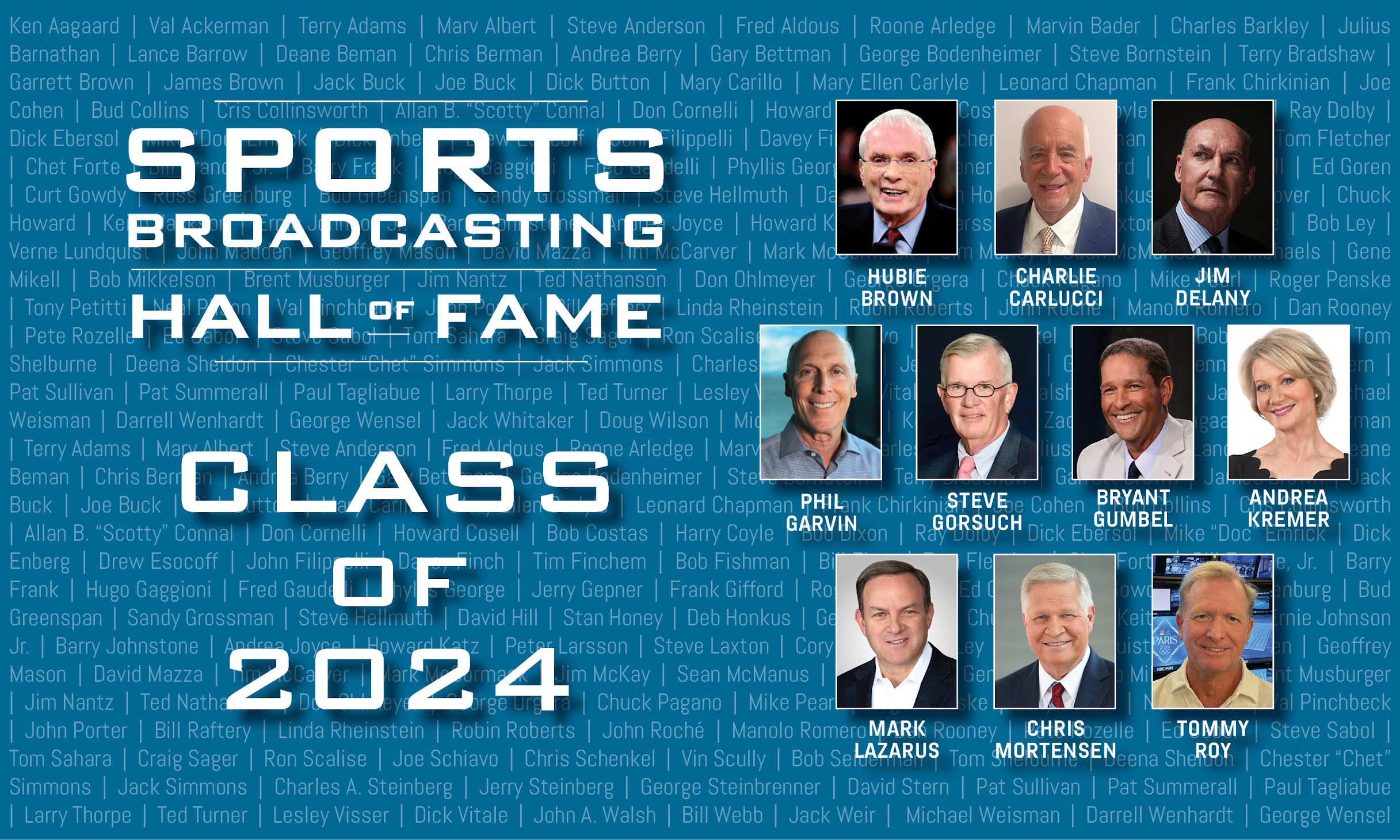 The Sports Broadcasting Hall of Fame is pleased to announce the inductees of the Class of 2024, comprised of 10 industry legends who have played a major role in moving the sports broadcast industry forward, both in front of and behind the camera. They will be inducted into the Hall of Fame on December 17, 2024, at a ceremony that will be held at the New York Hilton Hotel in Manhattan.