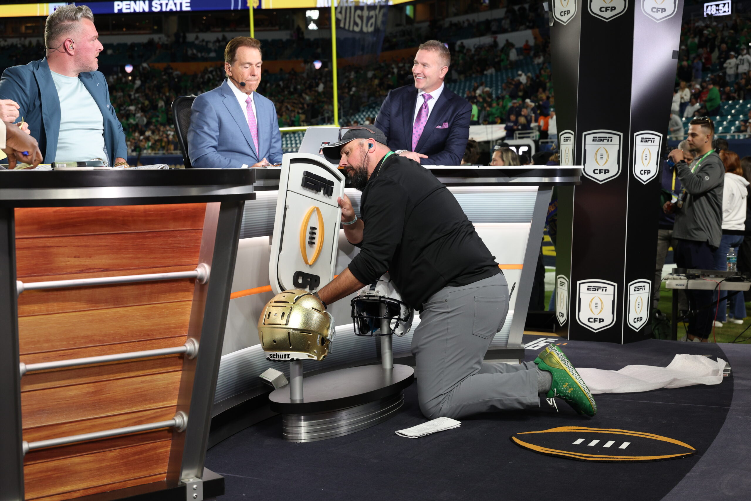 ESPN College GameDay Stage Director Mike Ruhlman makes final adjustments to the set prior to coverage of the Orange Bowl on Thursday Night. (Photo by Allen Kee / ESPN Images)