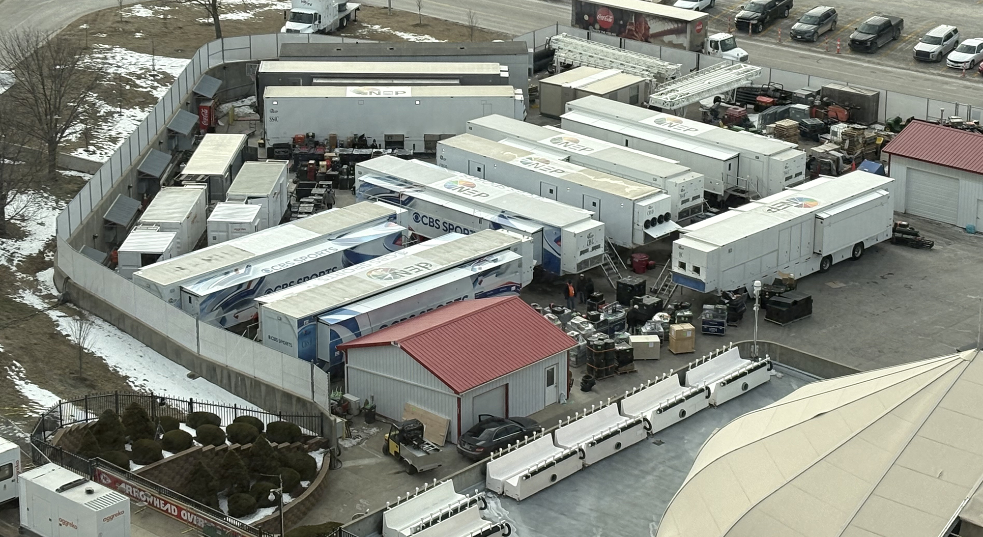 NEP Supershooter CBS A, B, C, and D units — the network’s A-game fleet throughout the regular season — is in the compound serving the game production. NEP Supershooter 4 (A and B units), which handled CBS’s B-game this year, will serve the studio-show operation, and an additional QC unit from NEP — dubbed Supershooter QC — is also on hand in the compound.
