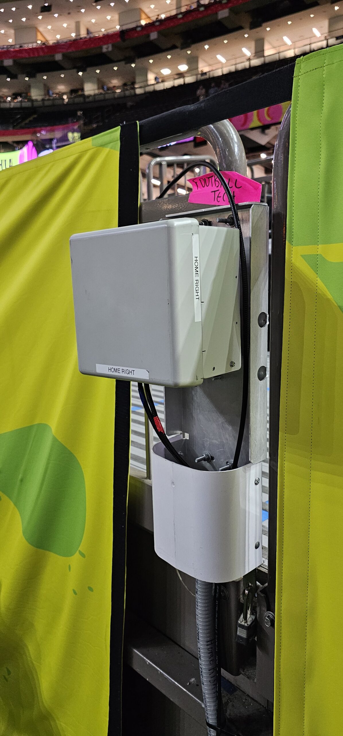 One of four 5G transmission nodes on the field of Super Bowl LIX that will support coaches communications. Only two are active at any one time, leaving the other two available as backups.