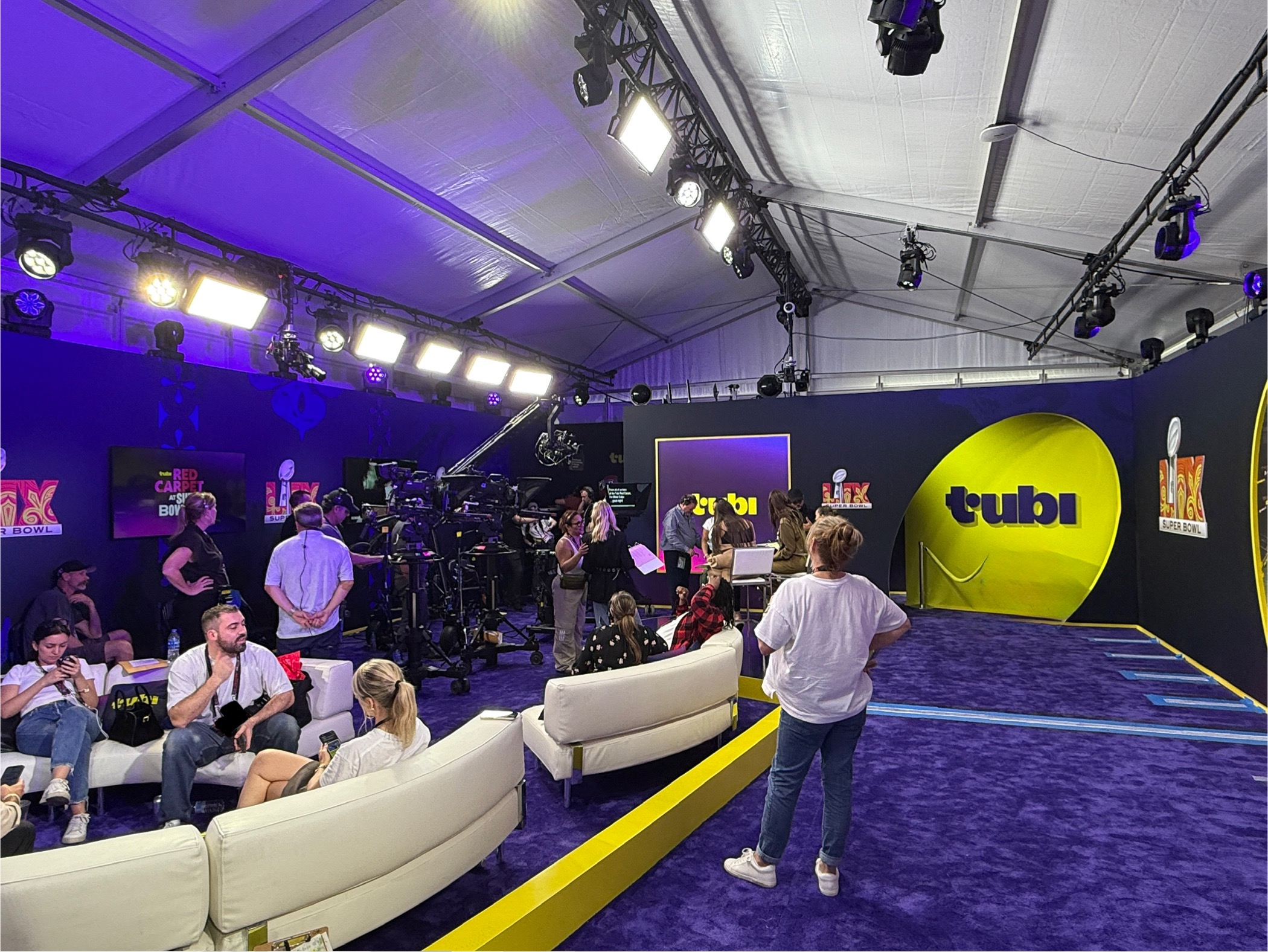 “I think we forget how many people are here for the largest football game in the world,” says Cheney. “It’s exciting to see how we can pull them into the show. We’ll also have a way for [the guests] to sit down and have a deeper conversation or a longer conversation with us.”