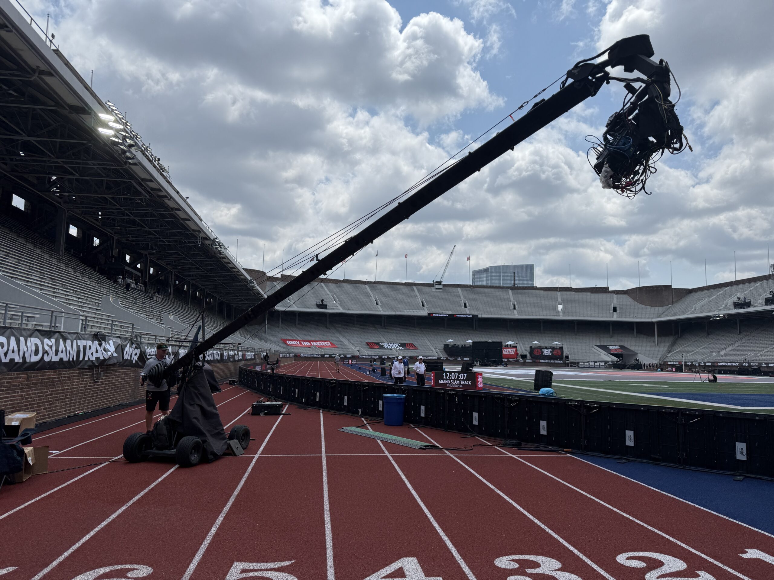 In Philadelphia, the 130-year-old venue was proactive and provided all of Grand Slam Track’s broadcast needs. Led by UPenn’s Assistant Athletic Director, Business Development, Joe Haughey; Associate Director of the Penn Relays, Aaron Robison; and their team, the working relationship between the university and the league was pivotal to a successful weekend.
