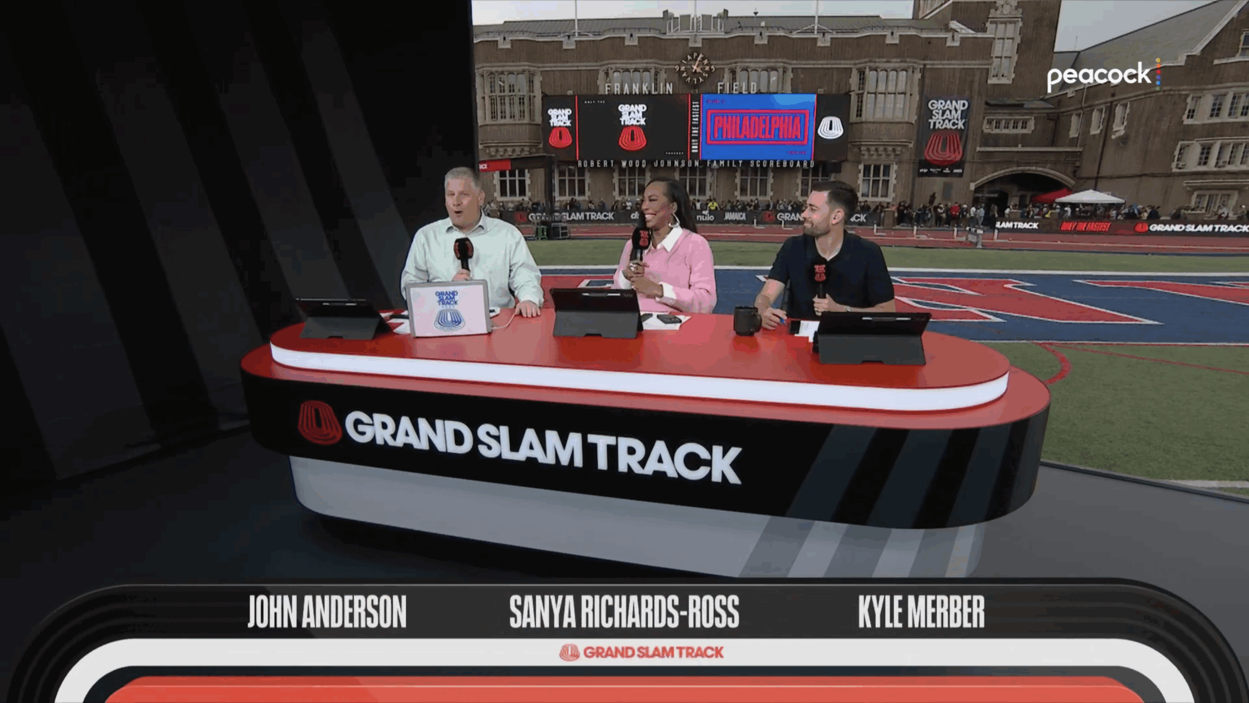 On the talent side, Grand Slam Track has legitimized their coverage with well-known voices from the community. On the studio front, host John Anderson, sprint analyst Sanya Richards-Ross, and distance analyst Chris Chavez are leading coverage from an onsite studio set. In Philadelphia, the desk was located in the center of historic Franklin Field and the show was joined by Grand Slam Track’s Senior Director, Racing, Kyle Merber. On the broadcast, races are being called by play-by-play announcer Steve Cram, sprint analyst Anson Henry, and distance analyst Carrie Tollefson. Reporters Taliyah Brooks and Radzi Chinyanganya also contribute to each broadcast. Director Clair Goodwin and senior producer Anneka Radley-Hodges are behind the world feed and director Micky Payne and studio show producer Rich O’Connor are driving the studio show. Technical manager Kevin Orwin is providing ample support for all productions and Coordinating Producer Michael Shames is overseeing distribution.