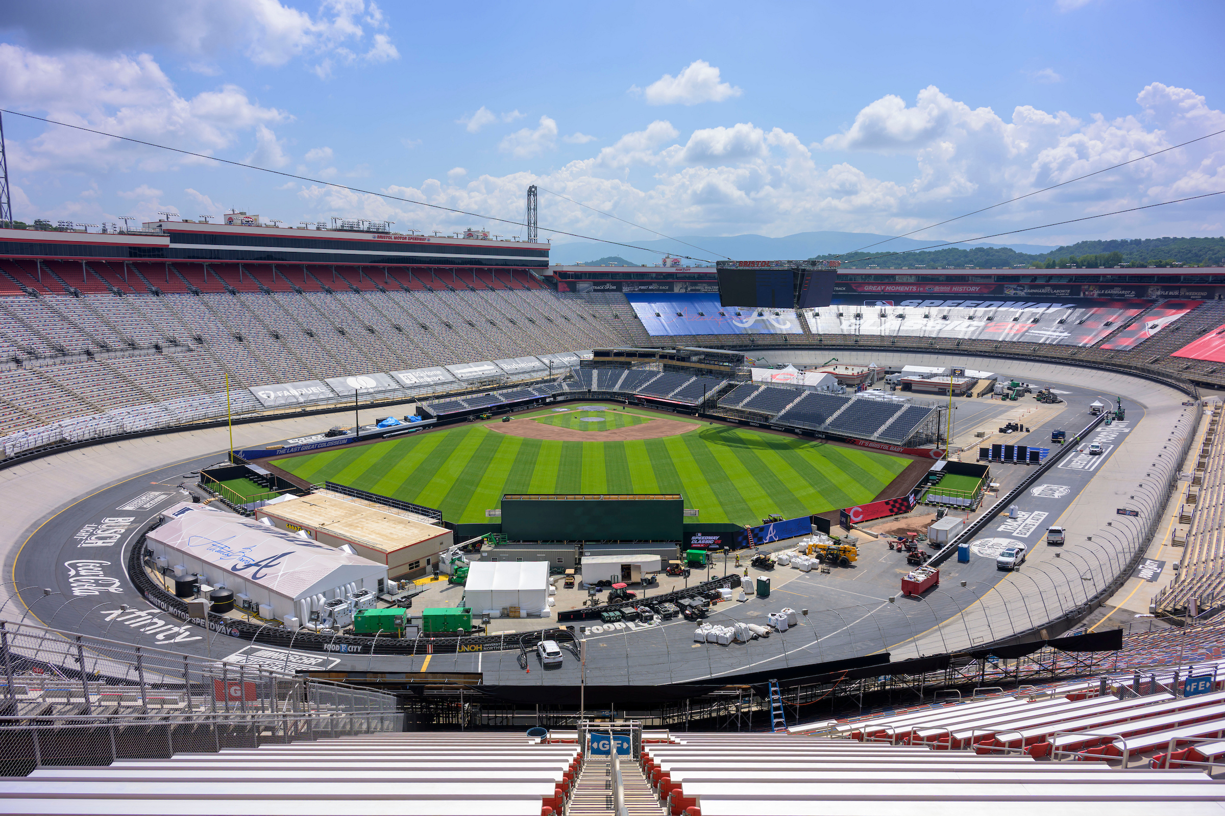 Bristol Motor Speedway is preparing for MLB Speedway Classic, a regular-season game between the Atlanta Braves and the Cincinnati Reds. (Photo: Randy Sartin/MLB Photos via Getty Images)