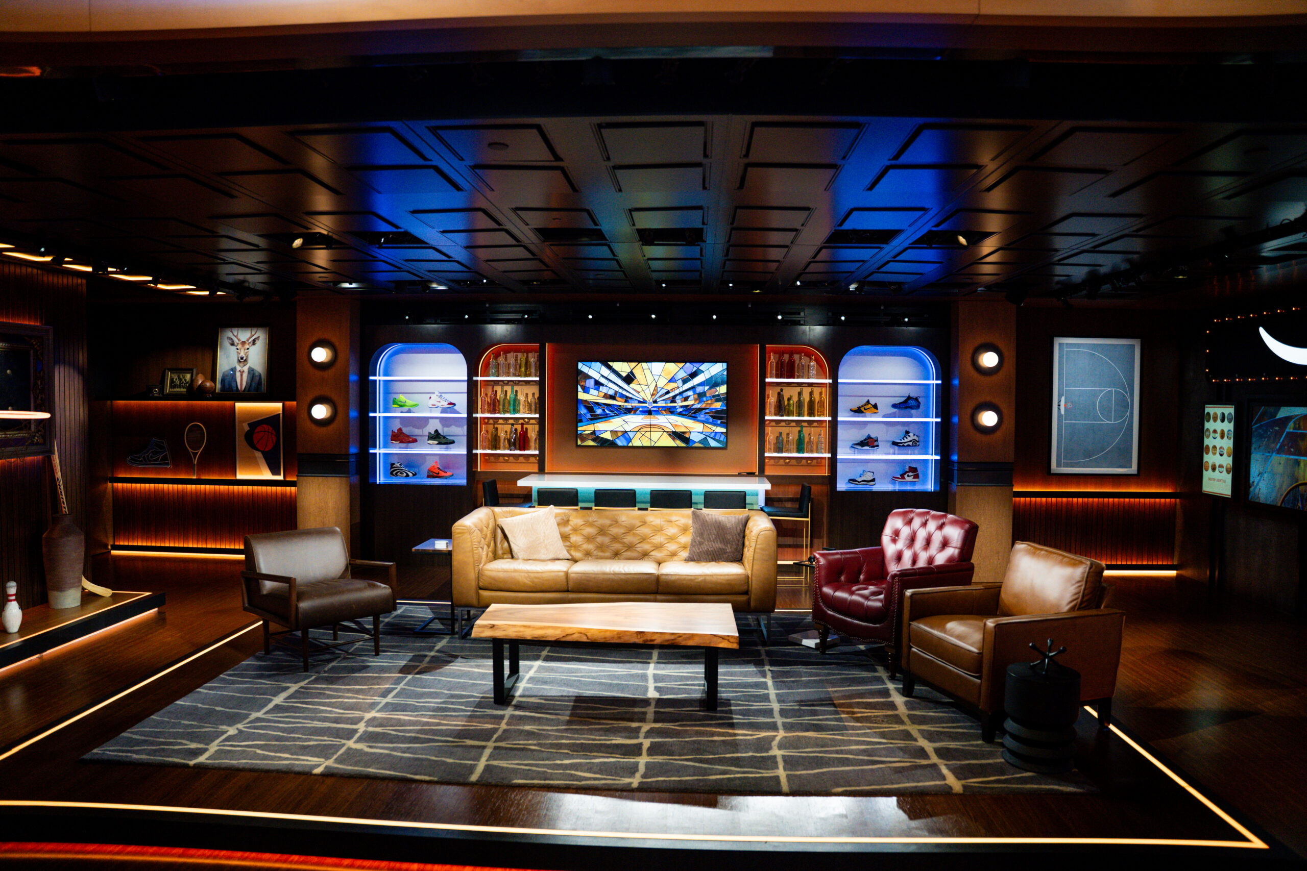 Each level of the studio serves a specific purpose for NBA on Prime studio programming. The main anchor desk will be used for the pregame show and shot from the second level mezzanine of the multilevel set, ensuring depth and constant view of the court. The lounge area on the ground floor used primarily for the NBA Nightcap postgame show will curate an inviting atmosphere making viewers feel at home with the NBA on Prime team as they interview guests and dive into deep analysis of the game.