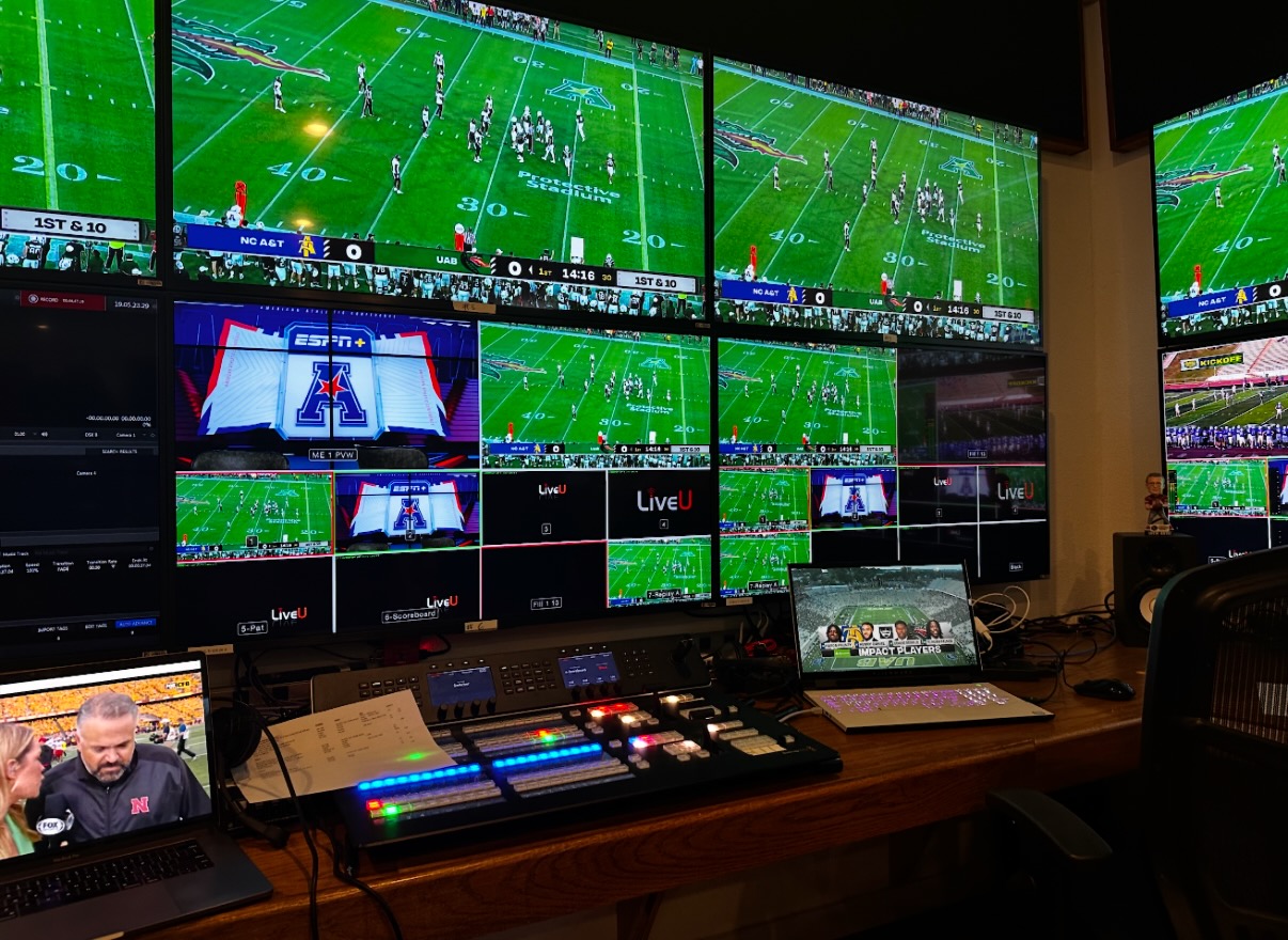 “We can have two control rooms for, say, two high school games or then do one larger control room with multiple replay and graphics operators for a college football game,” Rehling says. “For some games, we can fly one person with a flypack and hire local camera operators. For larger games, we roll a small mobile unit carrying cameras, shading, audio, and networking, but it’s still a very small footprint and team onsite compared with a full production mobile unit onsite.”