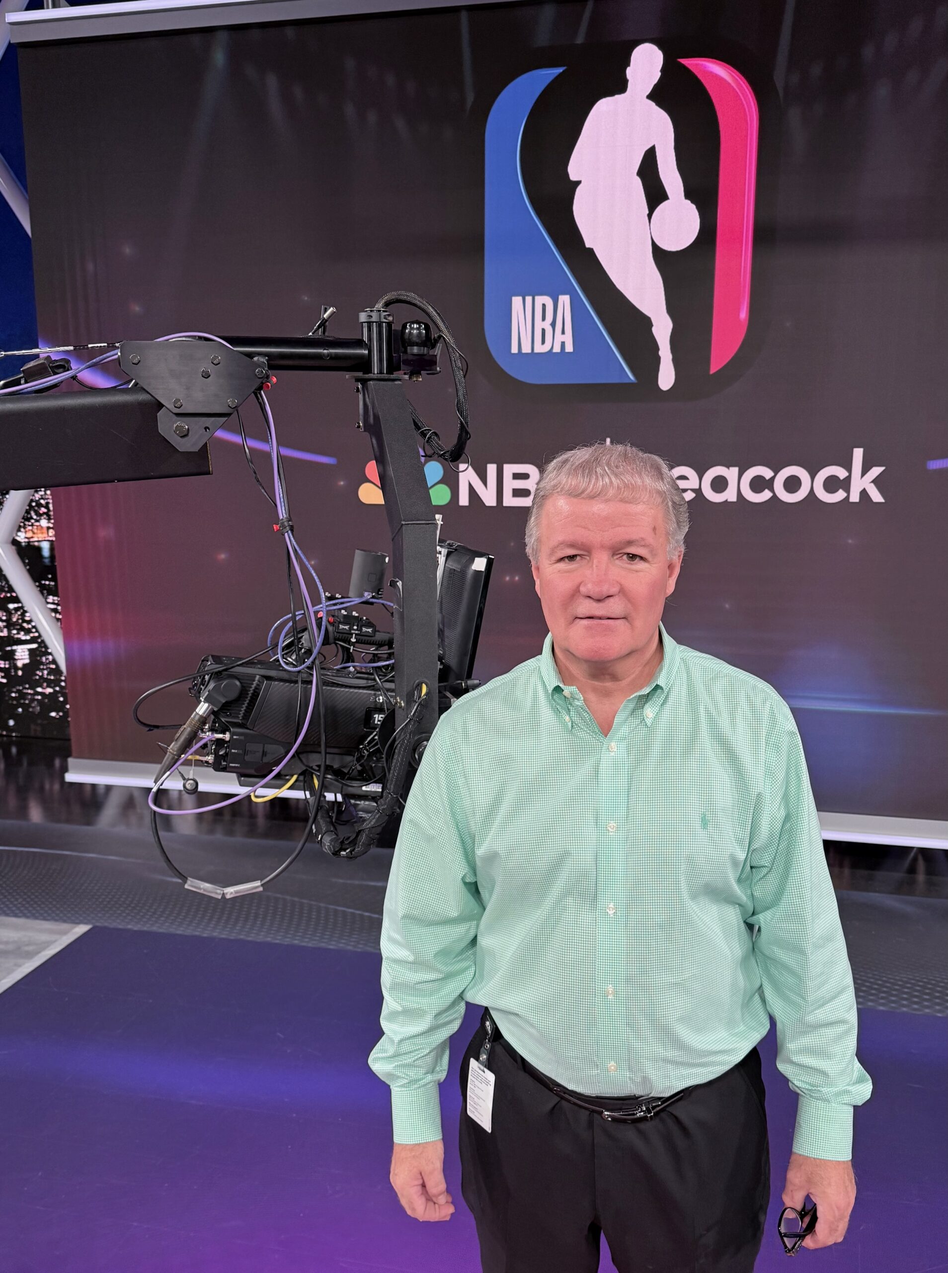 NBC Sports director Jared Sumner comes to the NBA on NBC studio show fresh off directing NBC’s college-football studio show (he also directed the Gold Zone show during the Paris Olympics, directed games for the Sunday baseball Leadoff package and the early portion of the Kentucky Derby, and was lead director for college hoops). To say he and the rest of the NBC Sports studio-show production team are excited to work in a revamped production environment would be an understatement.