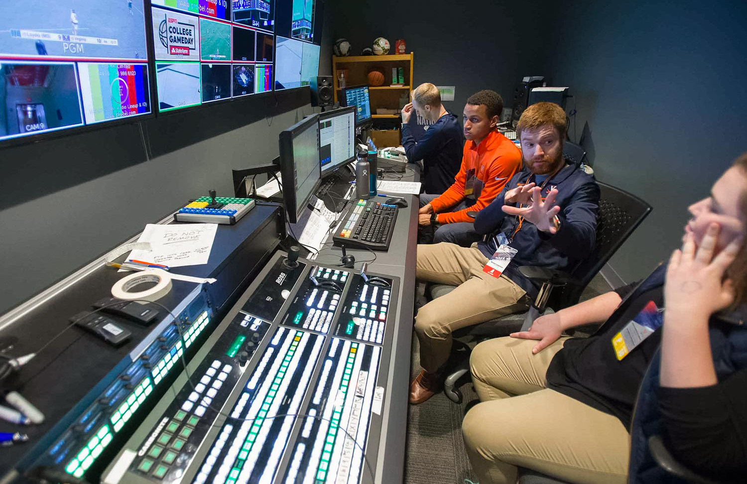 I serve on our department’s external leadership team and as interface between our unit and the various internal and external constituencies we work with, including our partners at ESPN and our teams, coaches, and administrators. In that role, I’m setting the show levels and production plans for all our various responsibilities, managing our budget, and optimizing our revenue opportunities and coverage of our teams. I’m also tasked with keeping an eye on the renewal and replacement of our physical infrastructure from control rooms to video displays. And I still get to sit in the chair and do my fair share of games, often directing broadcasts or producing a big-screen show but also broadcast producing, tech directing, running audio, engineering, or whatever else the crew needs on that day.