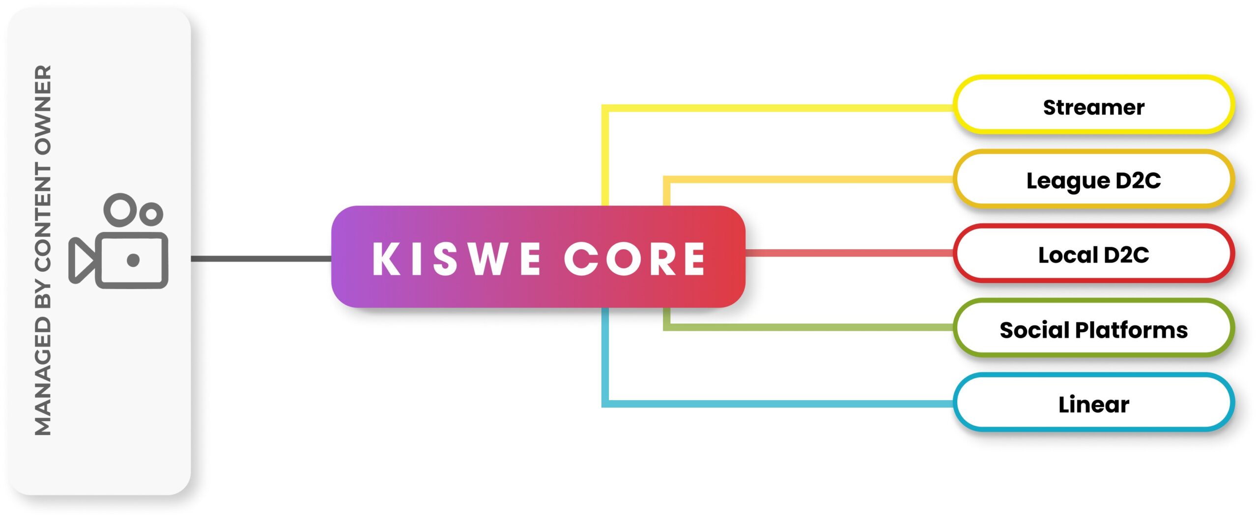 Kiswe Core can generate and deliver conditioned feeds from a single source automatically to any number of distributors.