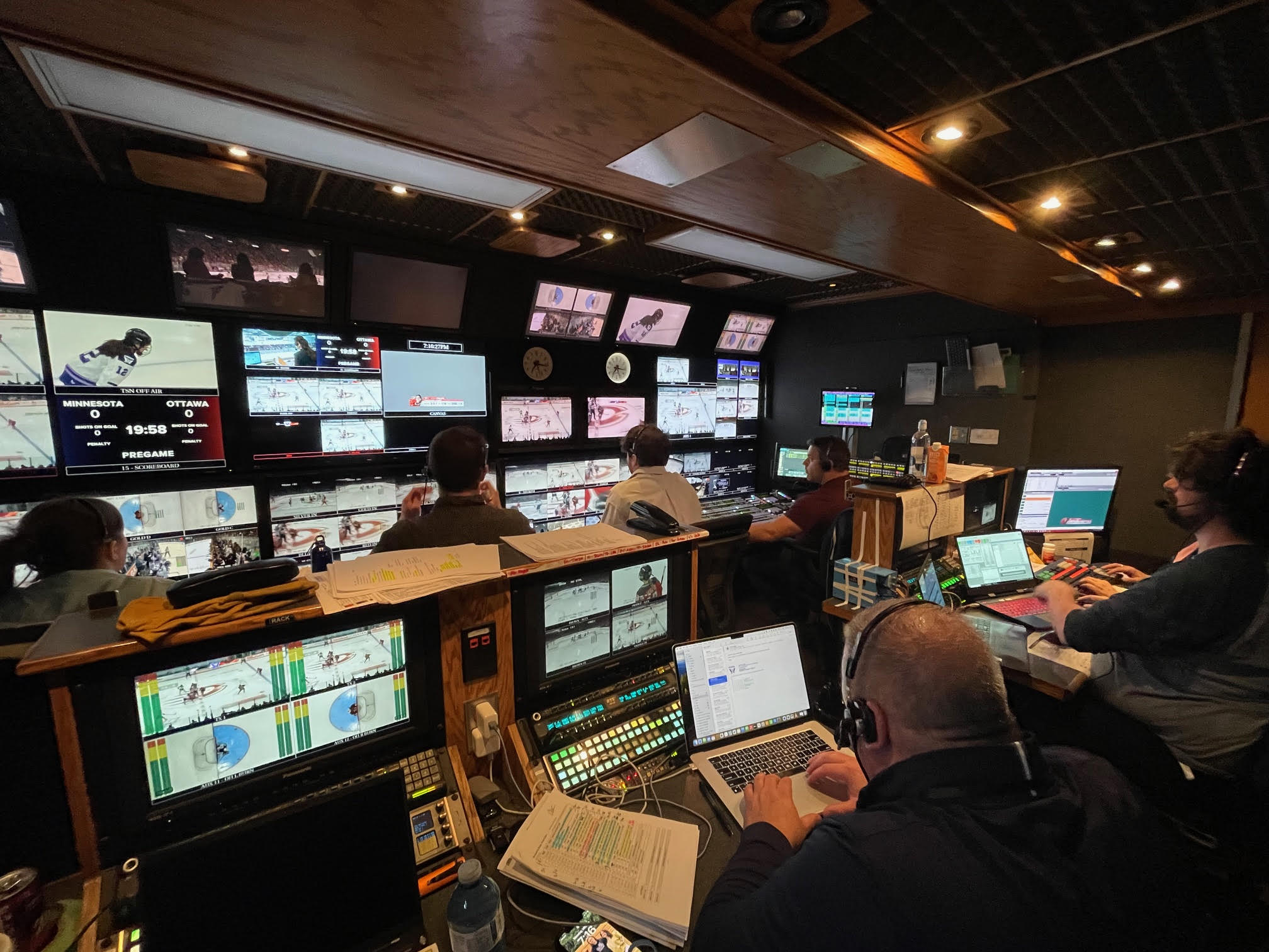The PWHL brings back Raycom Sports and Dome Productions as the production partners for its world-feed model. Here, the team at Dome Productions produces Game 1 of the PWHL Finals in Ottawa in May.