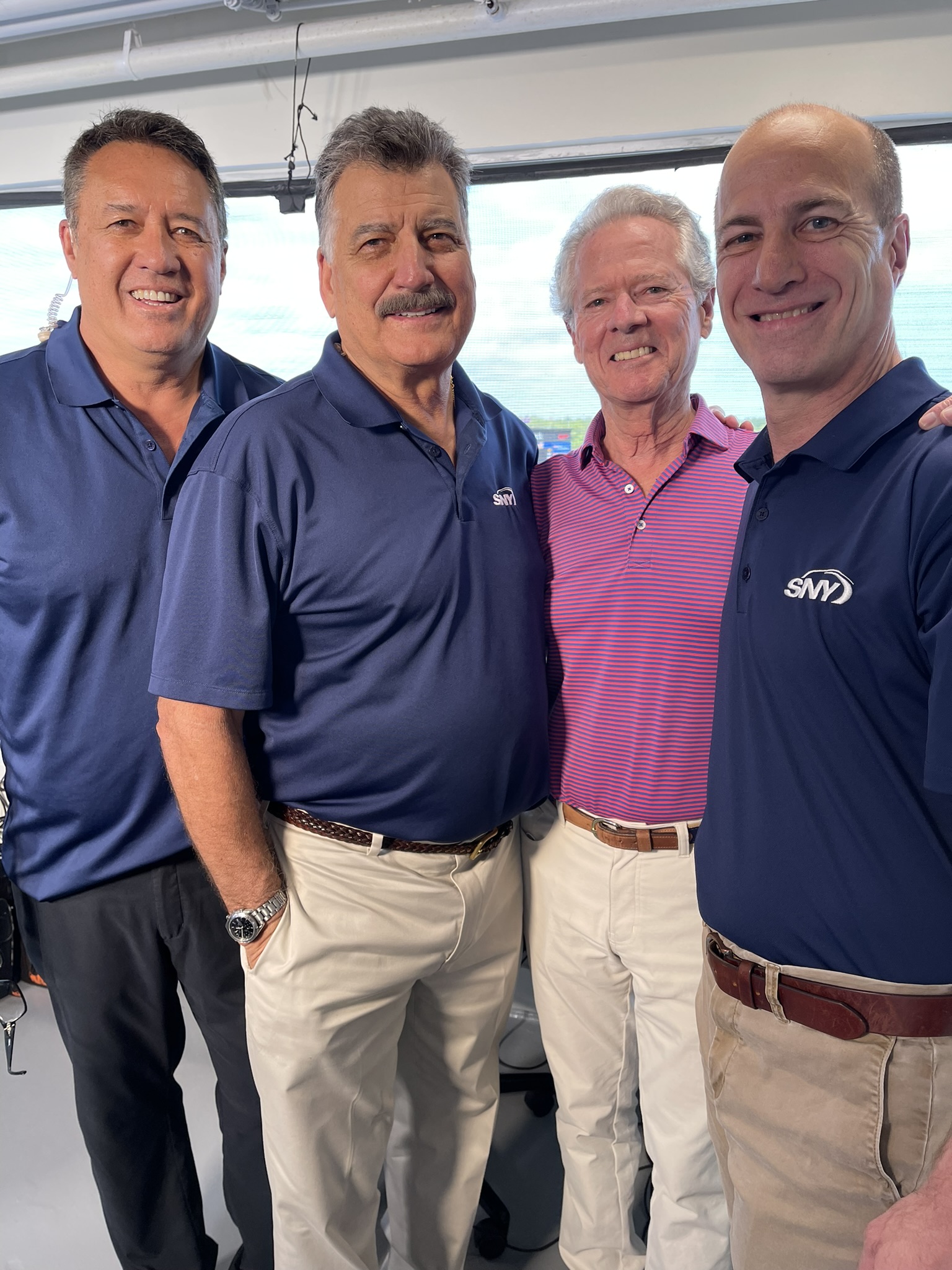 Gowdy Jr. (second from right) played a pivotal role in forming SNY’s announce team: (from left) Ron Darling, Keith Hernandez, and Gary Cohen.