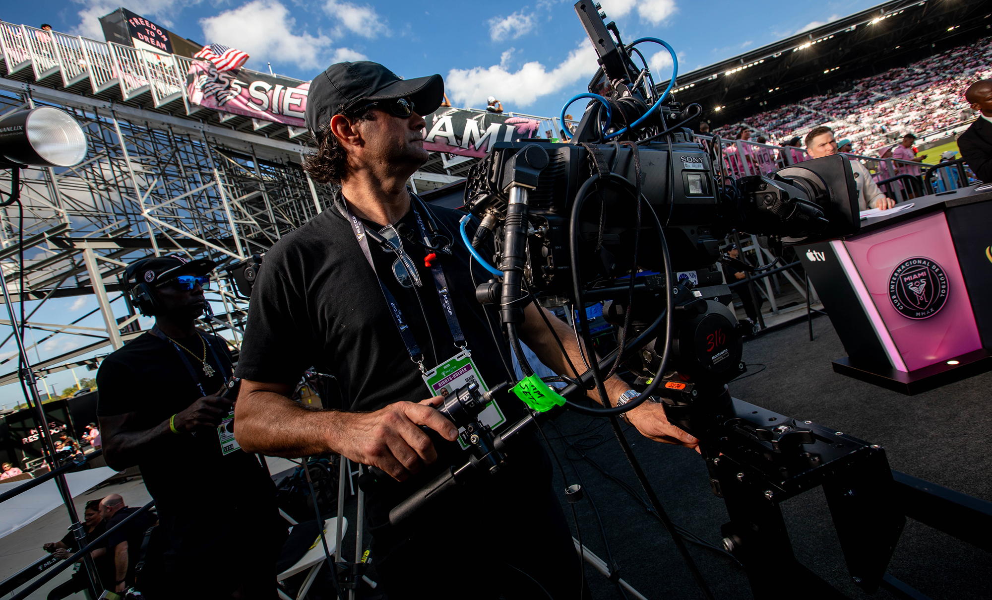 The 38-camera complement at Chase Stadium is headlined by a quartet of iPhone 17 Pros, which will capture live game footage in a historic first for an MLS broadcast. Also on hand are two Ronin RF Steadicams (one of which is equipped with an iPhone 17 Pro), in-goal robots in the nets on both sides of the field, four super-slo-mo systems, a referee cam, and a drone. The production team will also have more than 50 EVS record channels at its disposal.