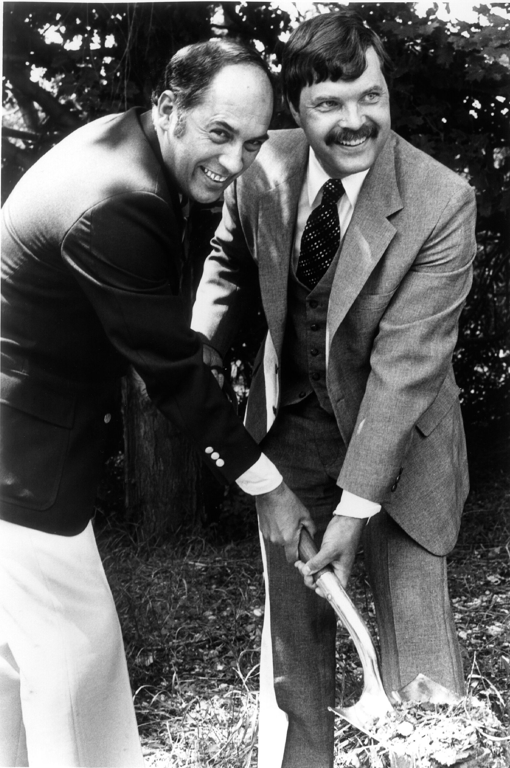 Rasmussen (left) and Bristol, CT, Mayor Michael Werner at the groundbreaking for ESPN’s Administration Center building on June 24, 1980. (Photo: ESPN Images)