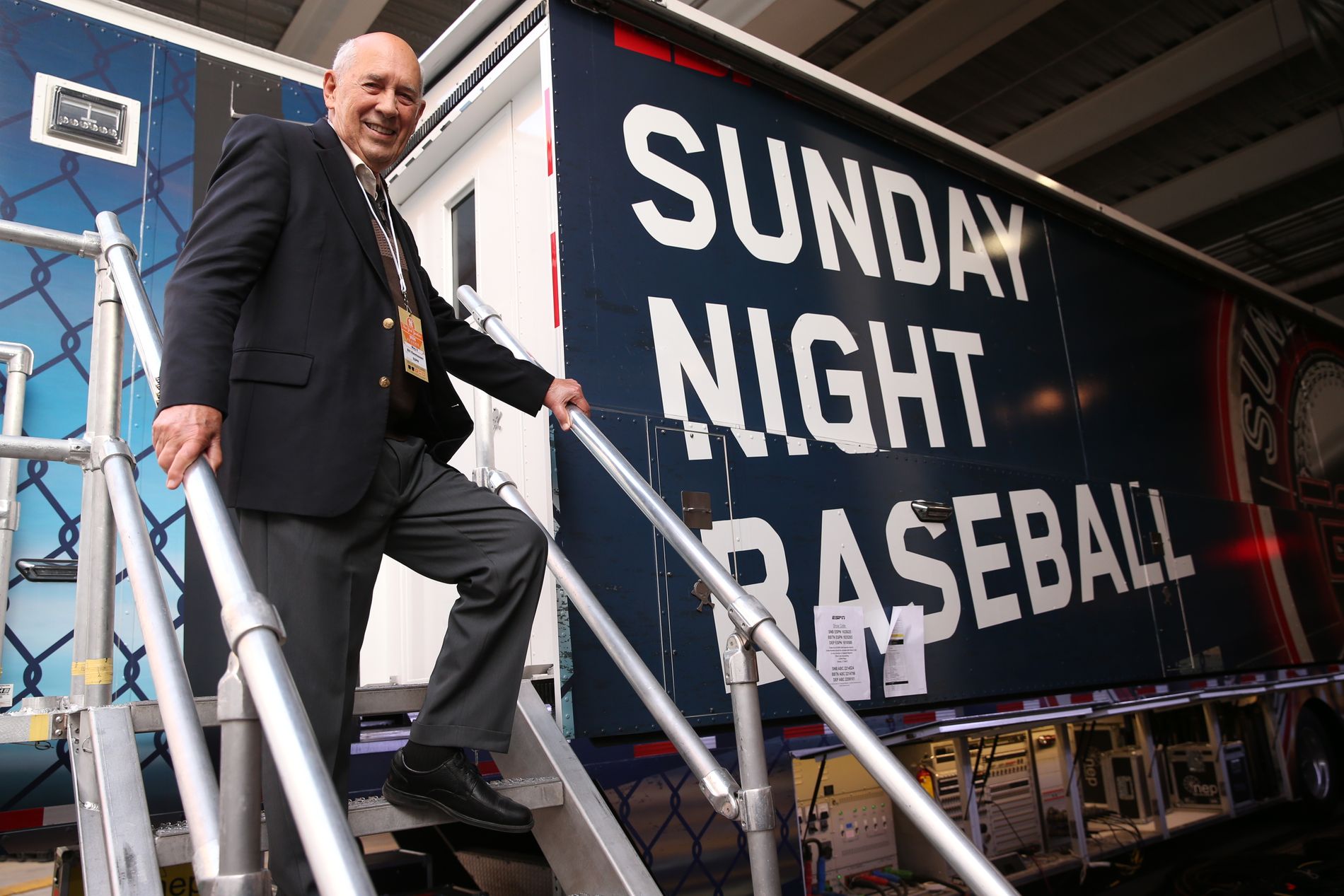 Rasmussen visiting the Sunday Night Baseball trucks during a regular-season game at Yankee Stadium in 2016. (Photo: Allen Kee/ESPN Images)