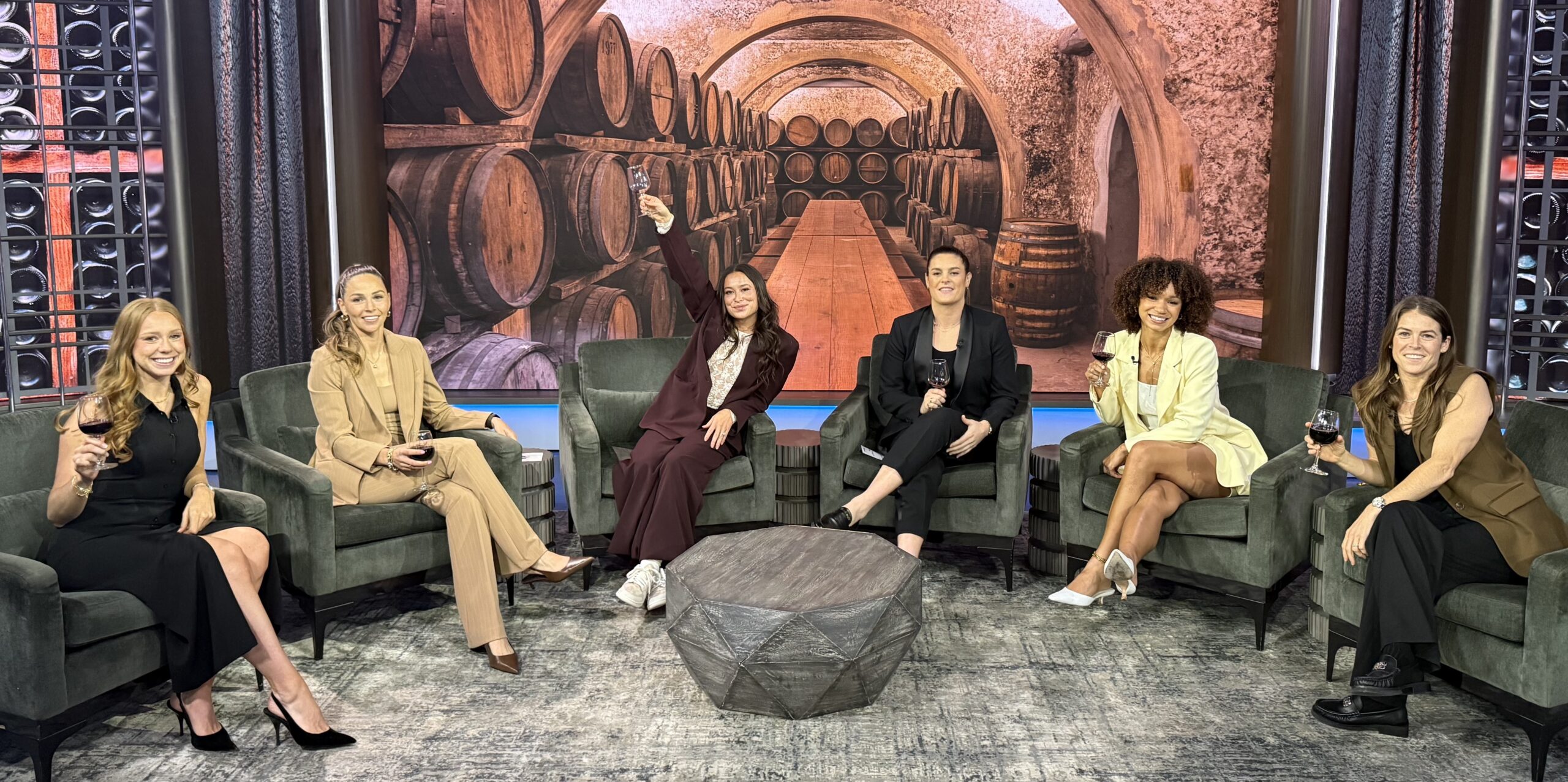 The UEFA Women’s Champions League Today on-air team: (from left) host Hannah Cash and analysts Jen Beattie, Janelly Farias, Darian Jenkins, and Kelley O’Hara (Photo: Hannah Cash/CBS).