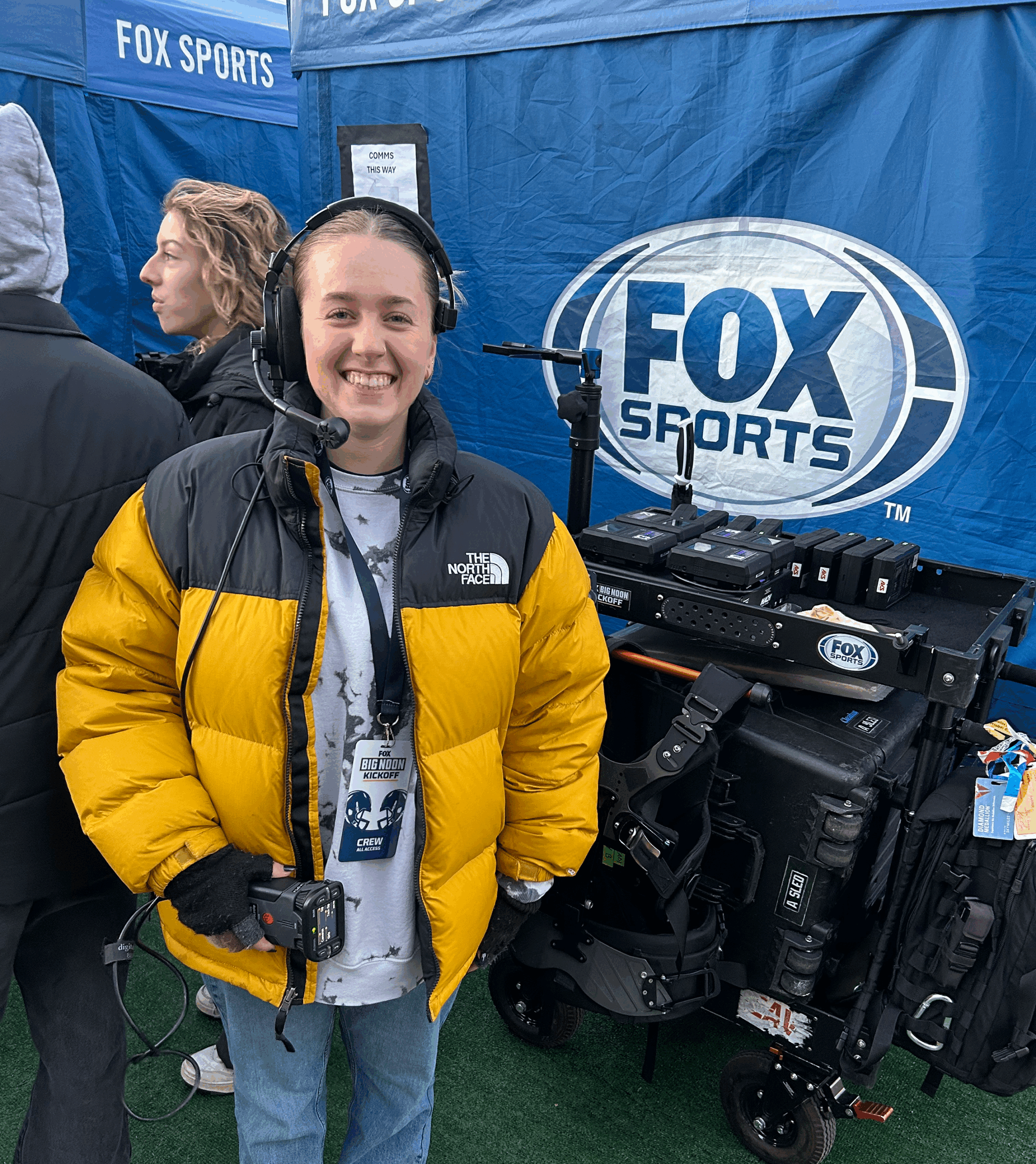 Patton, a 2025 CU Boulder graduate, worked as a production assistant and a utility on football games for FOX Sports this fall. (Photos: Francesca Patton)