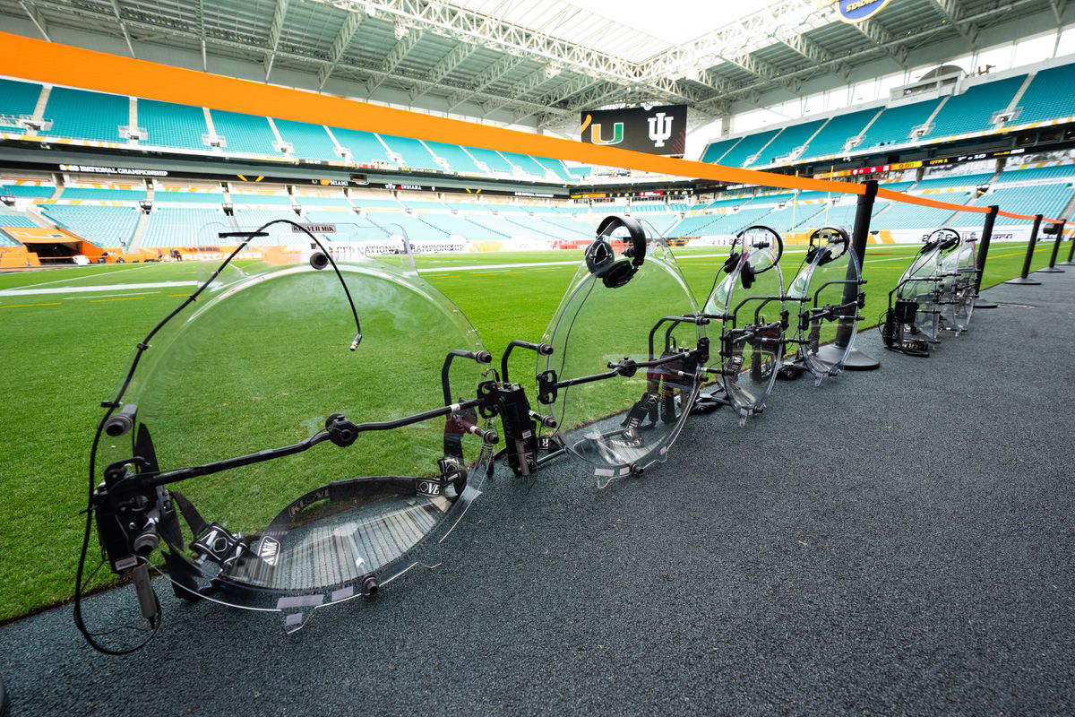 Parabolic microphones are lined up and at the ready prior to tonight’s 2026 College Football Playoff National Championship.