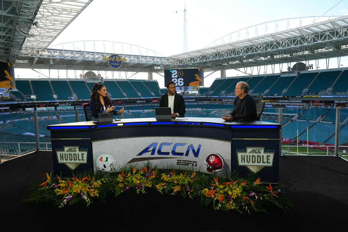 ACC Network’s ACC Huddle is one of the many ESPN and Disney shows broadcasting live from the 2026 College Football Playoff National Championship.