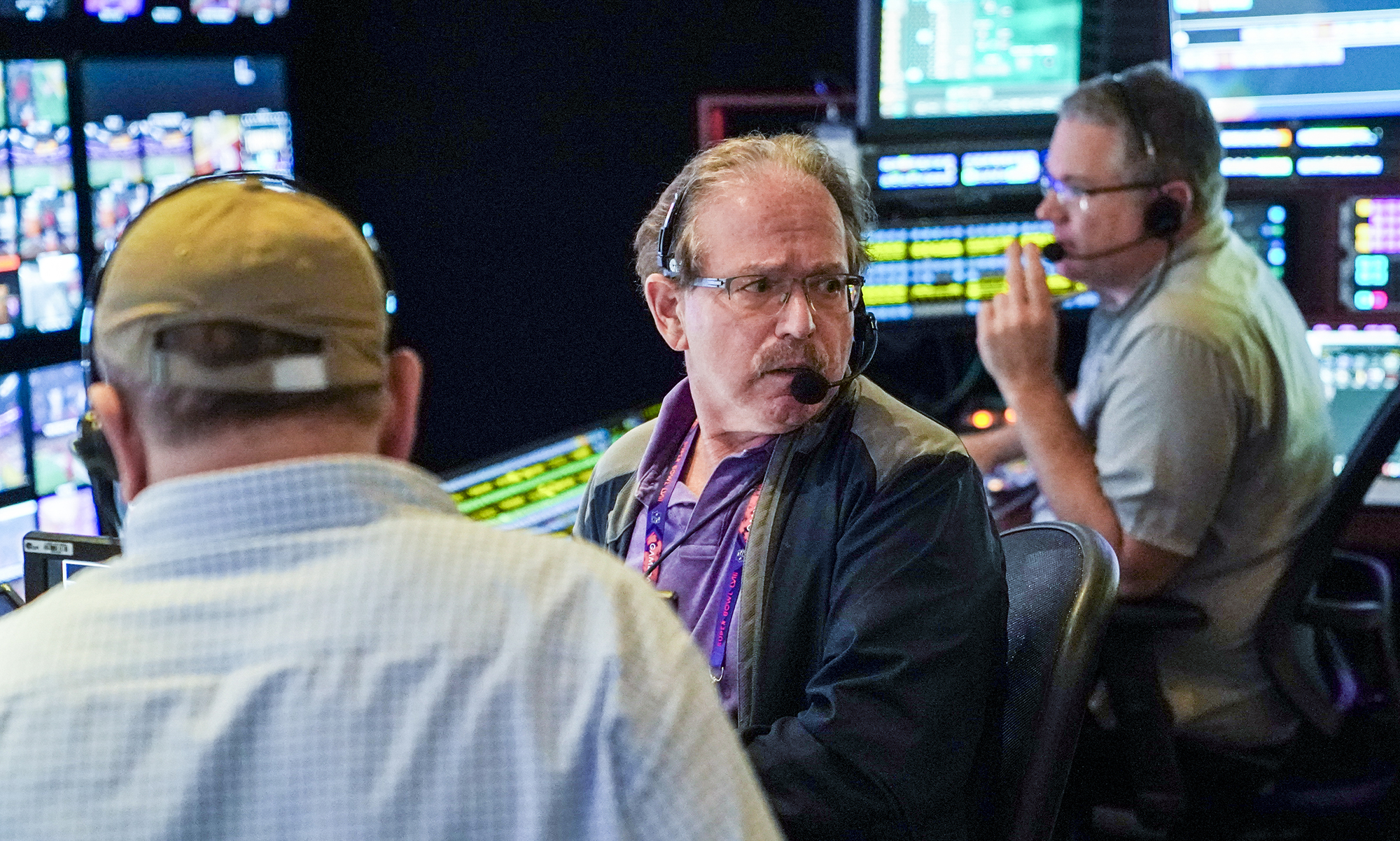 Rikhoff: On Tuesday mornings, we have a big production meeting on Zoom and briefly review what we did well and didn’t do well the week before. Then we talk about all the production elements, storylines, and matchups for [the upcoming week]. We’ll come up with ideas for specialty graphics, tape packages, historical vignettes, and those kinds of things. That gets the ball rolling, and the ADs and the BAs start creating all that [content].